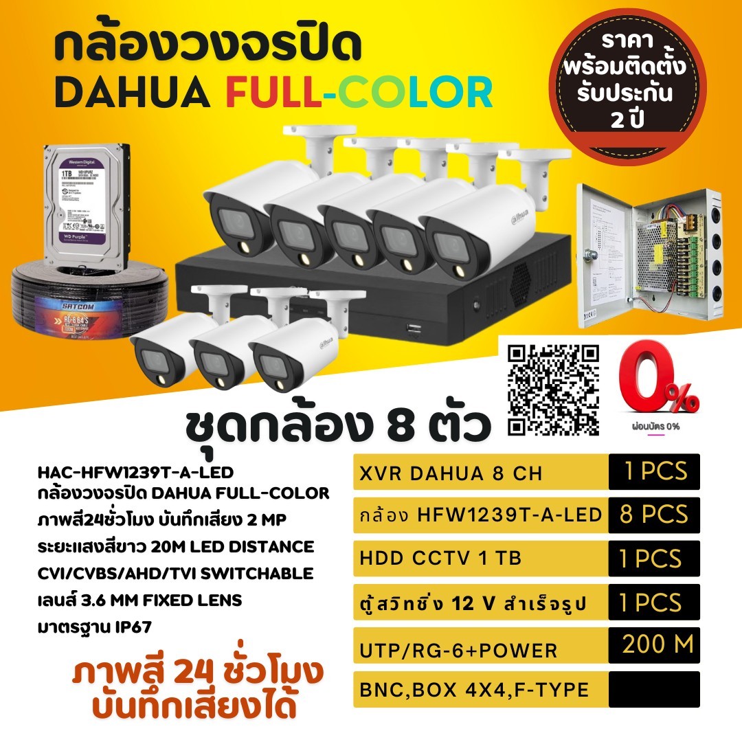 ชุดกล้องวงจรปิดDAHUAพร้อมติดตั้ง 8 ตัว ประกอบไปด้วย XVR DAHUA 8CH 1 ตัว กล้องอนาล็อก HFW1239T-A-LED 8 ตัว HDD CCTV 1 TB 1 ตัว ตู้สวิทชิ่ง 12Vสำเร็จรูป 1 ตัว UTP/RG-6+POWER 200 เมตร HAC-HFW1239T-A-LED กล้องวงจรปิด DAHUA FULL-COLOR ภาพสี24ชั่วโมง บันทึกเสียง 2 MP ระยะแสงสีขาว 20M LED DISTANCE CVI/CVBS/AHD/TVI SWITCHABLE เลนส์ 3.6 MM FIXED LENS มาตรฐาน IP67