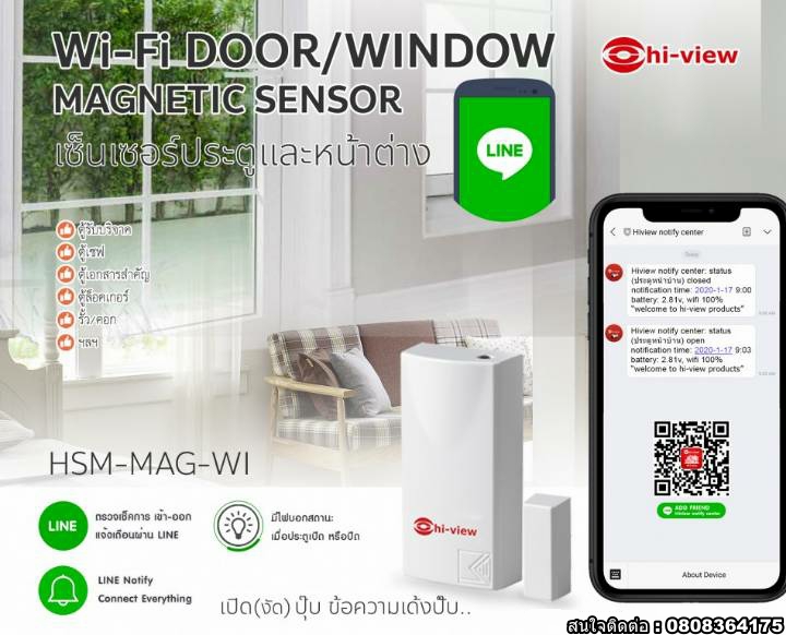 เซ็นเซอร์ประตูและหน้าต่าง Wi-Fi DOOR/WINDOW MAGNETIC SENSOR แจ้งข้อความ ผ่าน app Line เหมาะกับ:ตู้รับบริจาค ตู้เซฟ ตู้เอกสารสำคัญ ตู้ล็อคเกอร์ รั้ว/คอก ประตู หน้าต่าง ฯลฯ